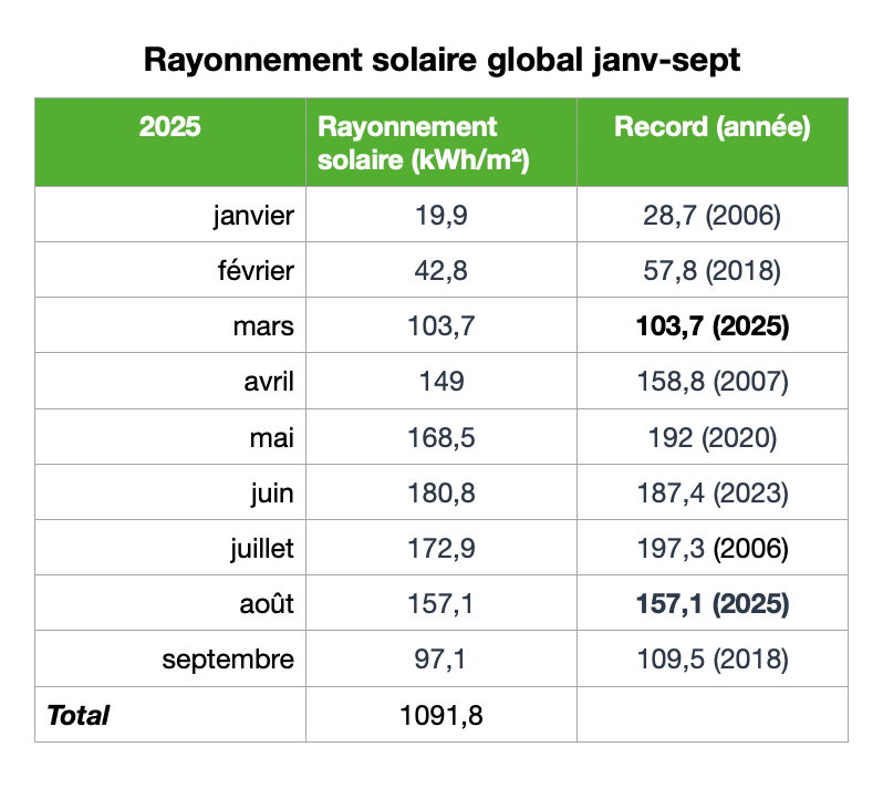 Baromètre solaire d’EnergyVision : les neuf premiers mois de 2025 ont déjà généré 1 091,8 kWh/m² de rayonnement solaire