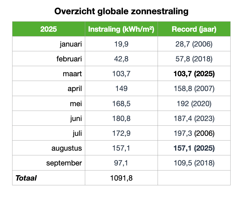 Zonnebarometer EnergyVision: eerste negen maanden van 2025 leverden al 1.091,8 kWh/m² instraling op