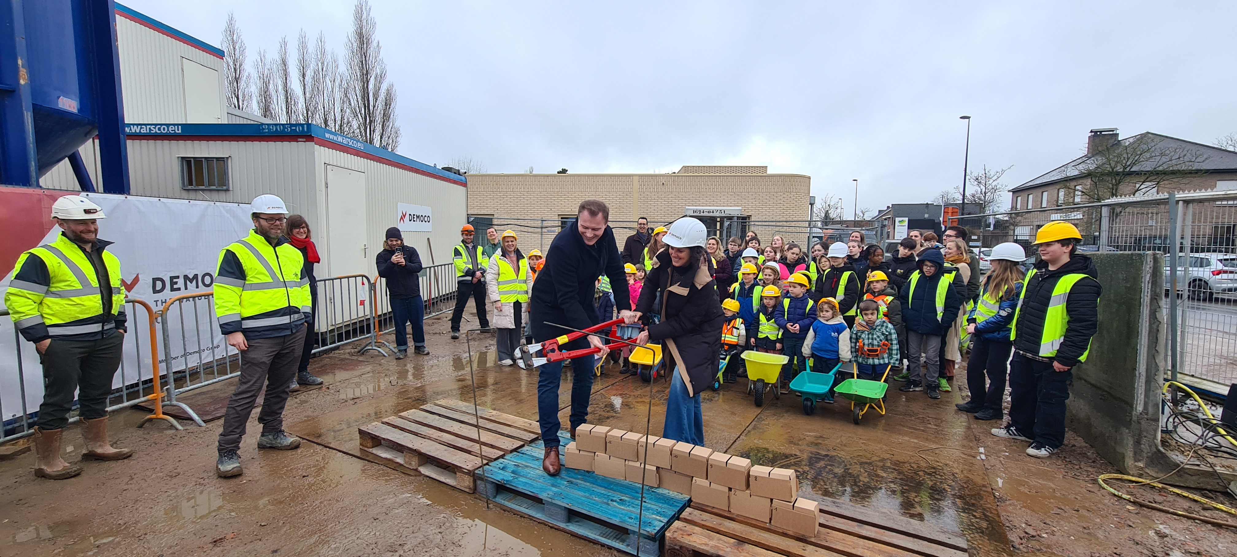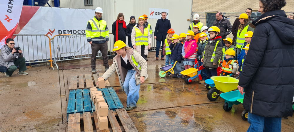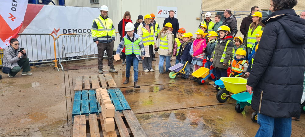 Directie GO! basisschool Het Klavertje Vier in Knesselare legt eerste steen van nieuwe schoolsite