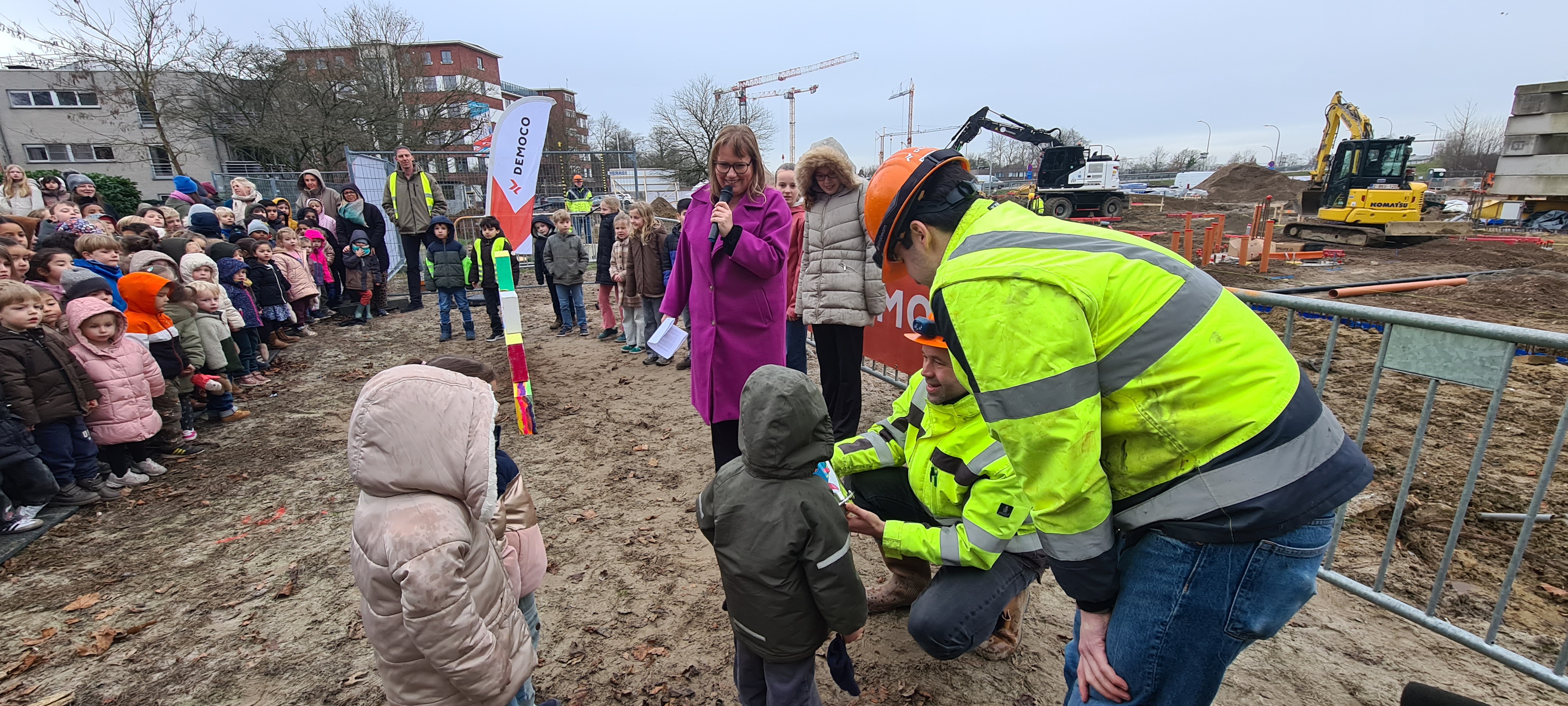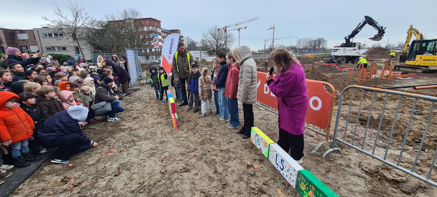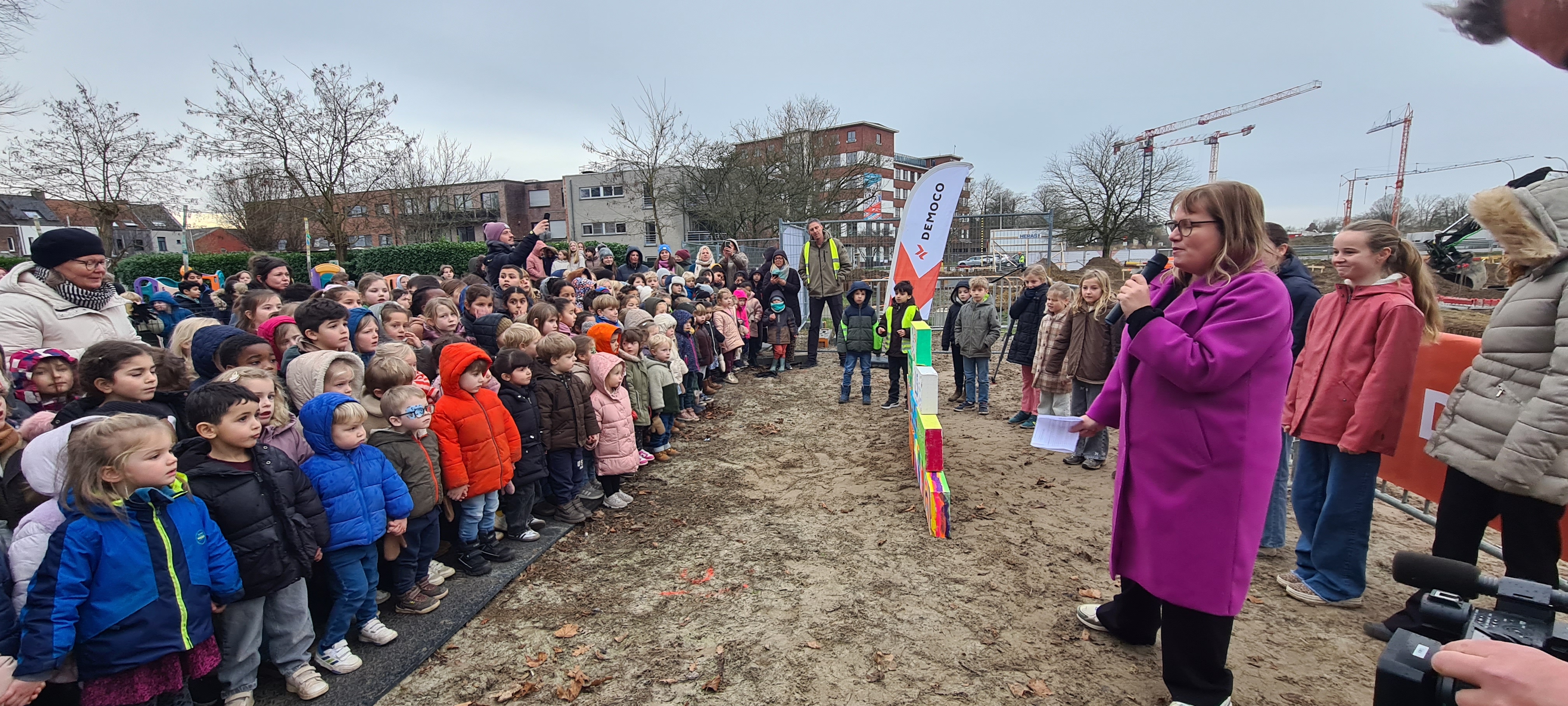De directie van GO! Basisschool Kiliaan heeft vanmorgen symbolisch de eerste steen gelegd van een nieuw schoolgebouw. Dat deed het samen met tal van genodigden, waaronder ook burgemeester Sofie Joosen. Een groene leeromgeving, geborgenheid en onderwijs op maat staan centraal in het ontwerp van de nieuwe campus. Als alles volgens plan verloopt, verwelkomt de school in september 2027 de eerste kleuters en leerlingen in de nieuwe campus.