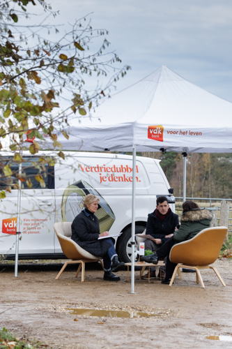 “Ondanks de nieuwe aanwervingen van het afgelopen jaar zijn we nog volop op zoek naar nieuwe collega’s voor zowel ons kantorennet als onze hoofdzetel om onze groei te kunnen volgen. Net zoals wij verwachten van toekomstige medewerkers dat zij door het vuur gaan voor onze klanten, leveren wij als werkgever een extra inspanning. Wij gaan naar waar de kandidaat wil solliciteren. Of dat nu op het parkeerterrein is van de sporthal waar dochterlief turnt, op de carpoolparking of bij de schoonouders. Daarmee zetten we meteen in de verf wat werken bij vdk bank betekent: een persoonlijk en warm nest dat bouwt aan de wereld van morgen. Voor jezelf, je omgeving en de planeet.”
