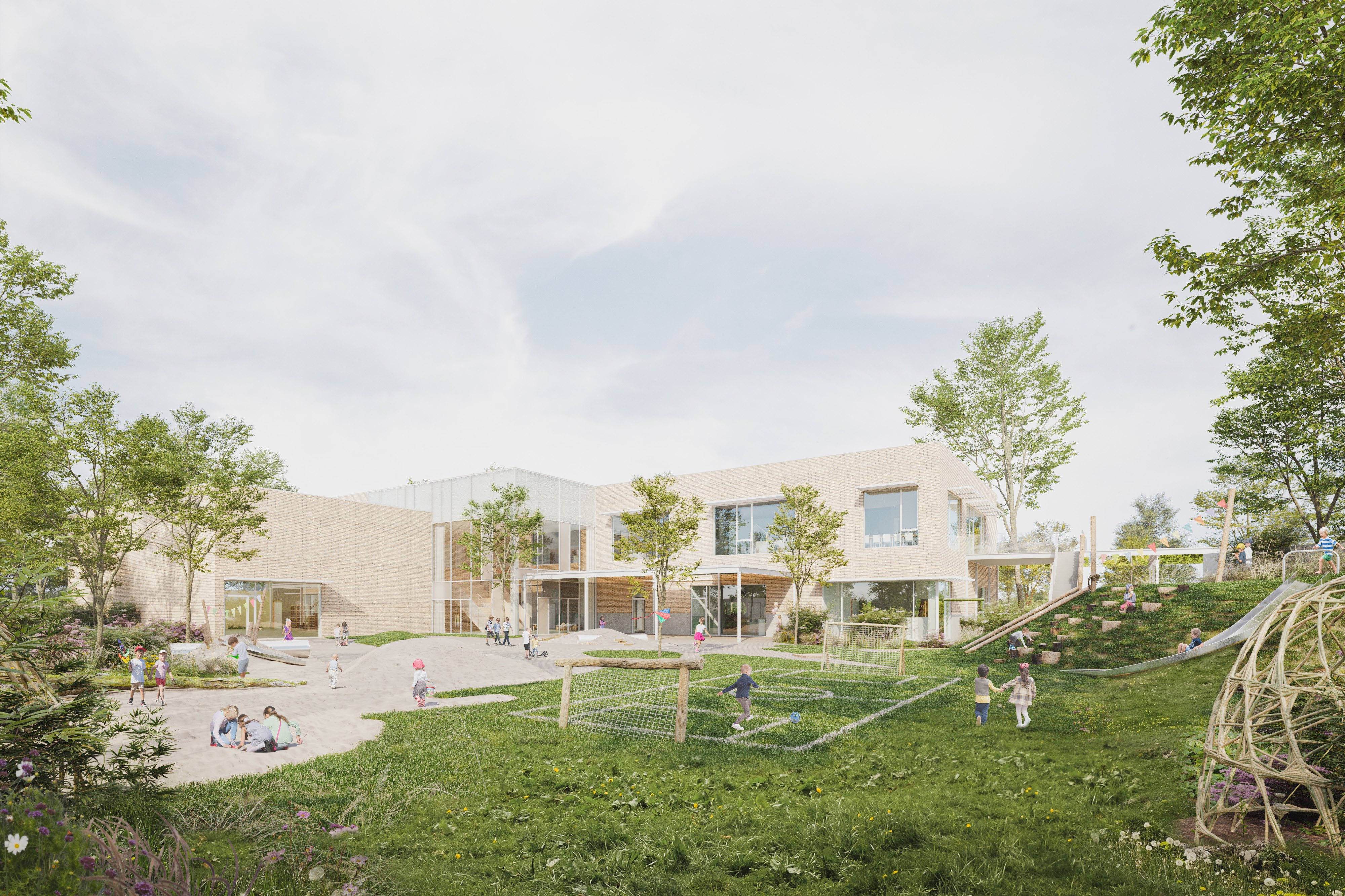 De werken zullen zo’n 20 maanden in beslag nemen. Concreet komt er een schoolgebouw met twee bouwlagen en een oppervlakte van 2.500 vierkante meter, waar zowel de kleuters, als de leerlingen van de lagere en de middenschool een nieuwe plek krijgen. In een volgende fase wordt het huidige gebouw van de lagere school afgebroken en komt er veel groen in de plaats, bovenop de al aanwezige bomen en groenzones. Alles bij elkaar wordt zo’n 3.000 vierkante meter onthard. Verder voorziet Hasa Architecten nog twee speelplaatsen, eentje met speelzand en eentje met een sportplein en amfitheater. Aan de voorkant van de school komt tot slot nog een ‘kiss & ride’-zone, en plaats om fietsen te stallen.
