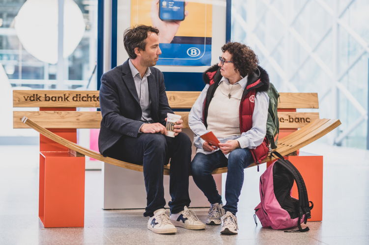 « Notre banc spécial fait ses débuts en Wallonie. Il a une forme particulière qui incite les gens à se rapprocher les uns des autres. En arborant ce symbole temporaire en mode itinérant, nous voulons montrer que, même à l’ère du numérique, il y a largement la place pour poser toutes vos questions personnelles sur l’argent à un expert financier d’une banque. Nous réagissons ainsi au fait qu’un quart des Belges ne se sentent plus les bienvenus dans leur banque. »