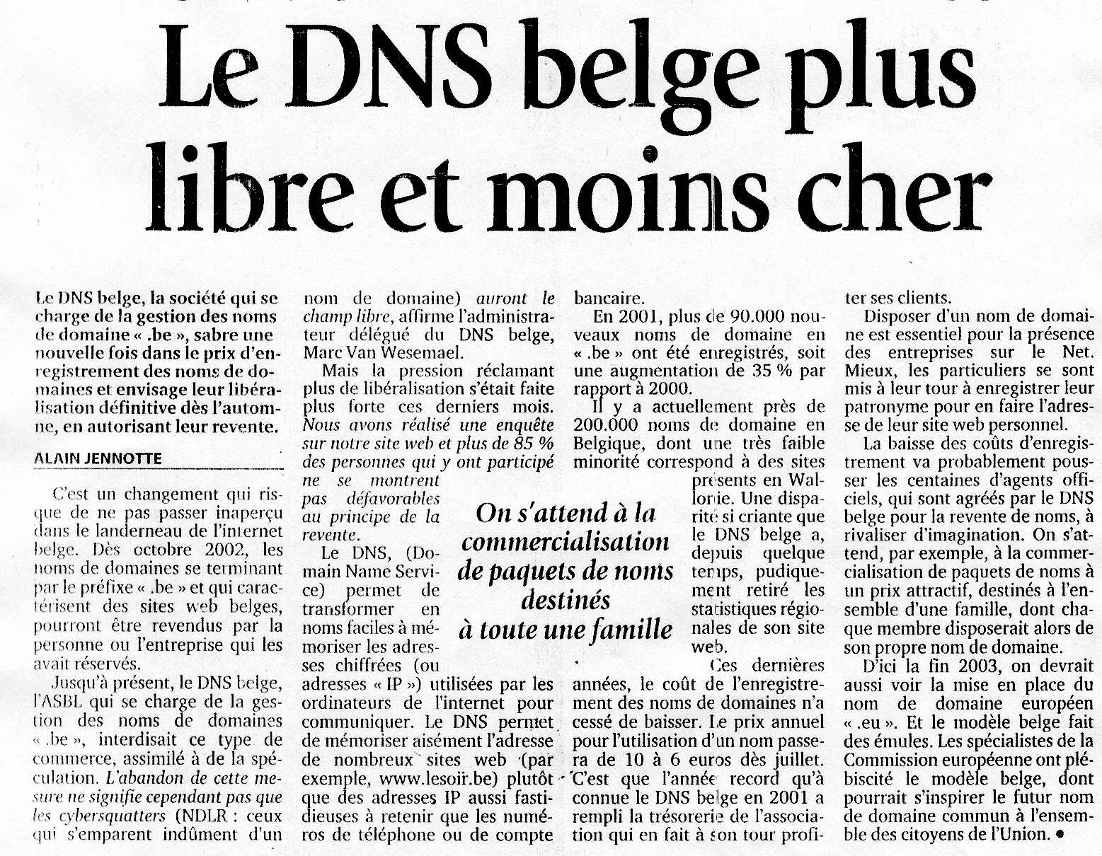 Philip Du Bois, Managing Director de DNS Belgium : « À partir de 2000, tout le monde a pu enregistrer un nom de domaine .be selon le principe du "premier arrivé, premier servi". L’impact a été immédiatement perceptible. En moins de trois semaines, le nombre de domaines a doublé, passant de 40 000 à près de 90 000. Tout à coup, tout le monde pouvait conquérir sa propre part de l’internet belge. Ce fut le véritable début de la croissance numérique dans notre pays. »