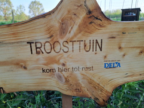 Vanuit hun expertise moedigt DELA het gebruik van concrete hulpmiddelen om verdriet en pijn bespreekbaar te maken bij kinderen ten zeerste aan. De troosttuin biedt daar volgens de uitvaartspecialist op verschillende manieren een mooie aanzet voor. Zo is er een knus bankje waar ze tot rust kunnen komen en een kast met boekjes waar ze troostende woorden vinden. Verder vinden kinderen er een handleiding om een “troostpopje” te knutselen en kunnen ze op trooststeentjes troostende woorden schrijven. Maar het meest opvallende initiatief is de speciale brievenbus. Daarin kunnen kinderen brieven of tekeningen over hun verdriet posten. Vrijwilligers van De Zorgmier vzw verwerken de ongeopende post tot papier vermengd met bloemzaadjes. Die kunnen de kinderen dan planten in de tuin. Zo groeit hun verdriet - letterlijk - uit tot iets moois.