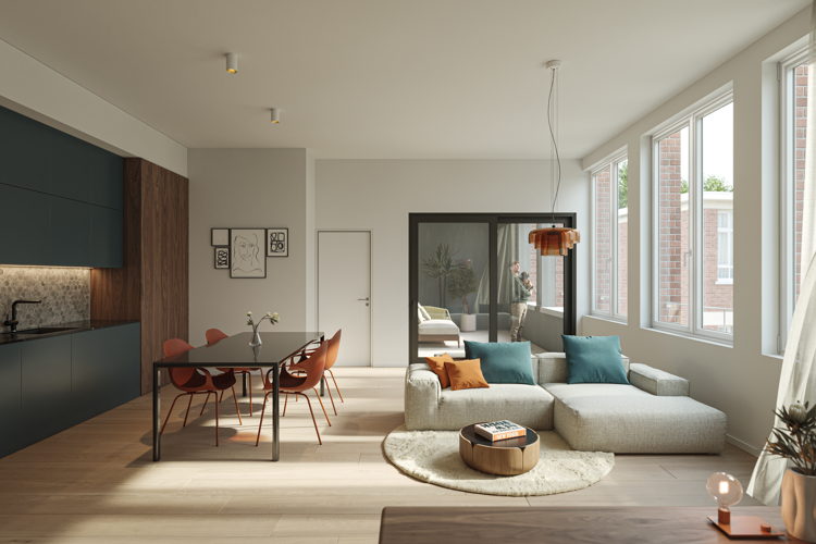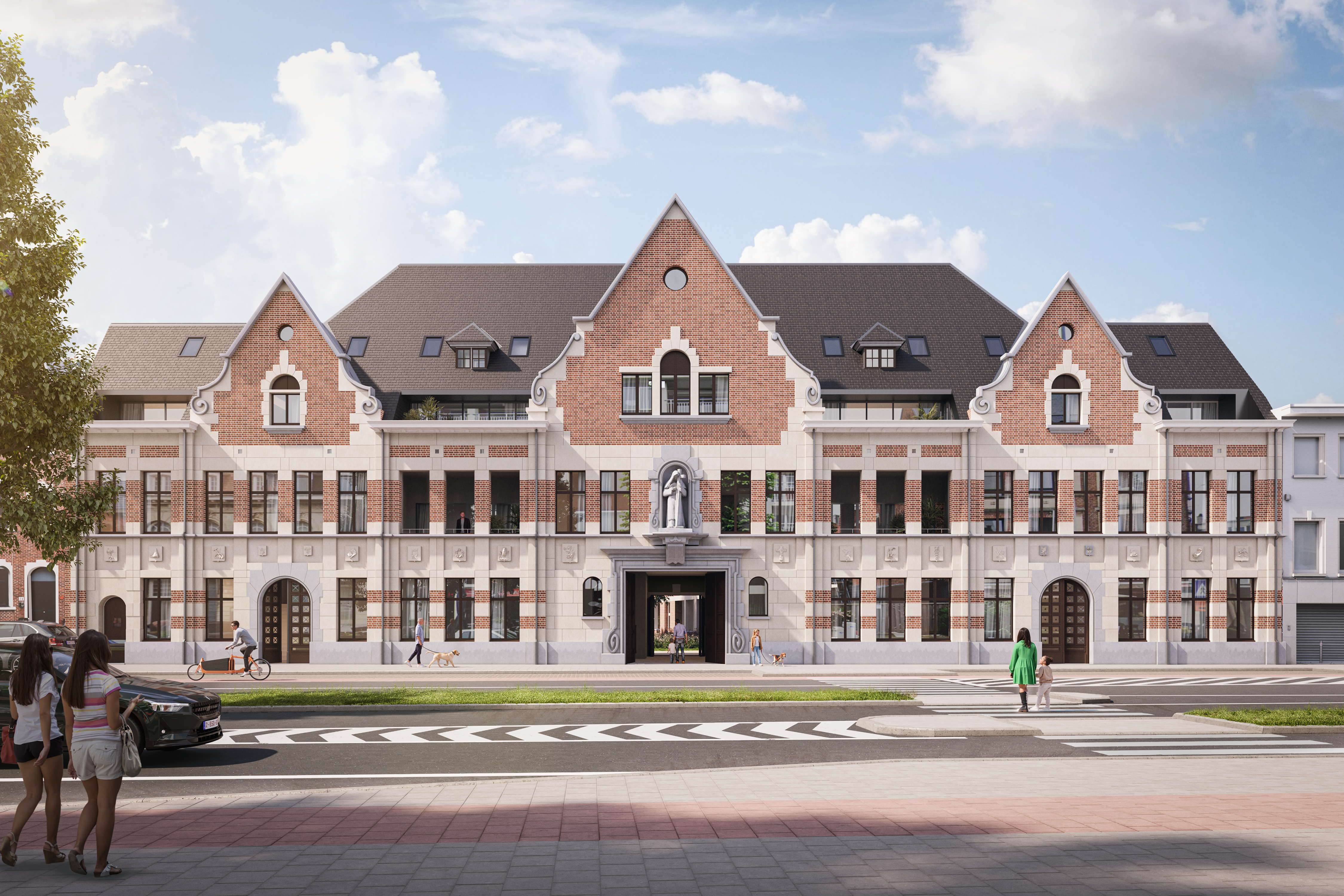 Concreet komen direct achter de historische voorgevel 15 appartementen van 58 tot 127 vierkante meter. Het Antwerpse META Architectuurbureau voorziet deze zogeheten ‘Campus-appartementen’ van onder meer grote ramen, hoge plafonds en overdekte terrassen. De andere oude klasgebouwen in typische rode bakstenen worden volledig gerenoveerd. Ze krijgen aan de ene zijde van de binnenplaats een nieuw leven als 4 geschakelde woningen met overdekte terrassen en aan de andere zijde als 2 woningen met elk een terras achteraan en 4 appartementen van 54 tot 89 vierkante meter.