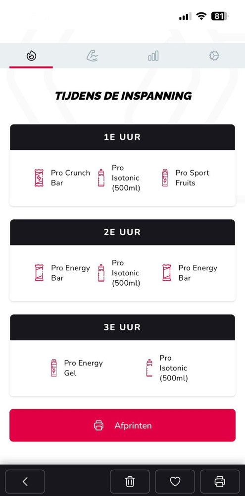 Wielertoeristen drukken hun persoonlijke voedingsplan af op een sticker en plakken het op hun stuur of nemen het mee op hun gsm. Later dit jaar zal de voedingsapp van Neapharma gekoppeld kunnen worden aan fietscomputertjes. Zo krijg je tijdens de rit live meldingen wanneer je moet bijtanken.